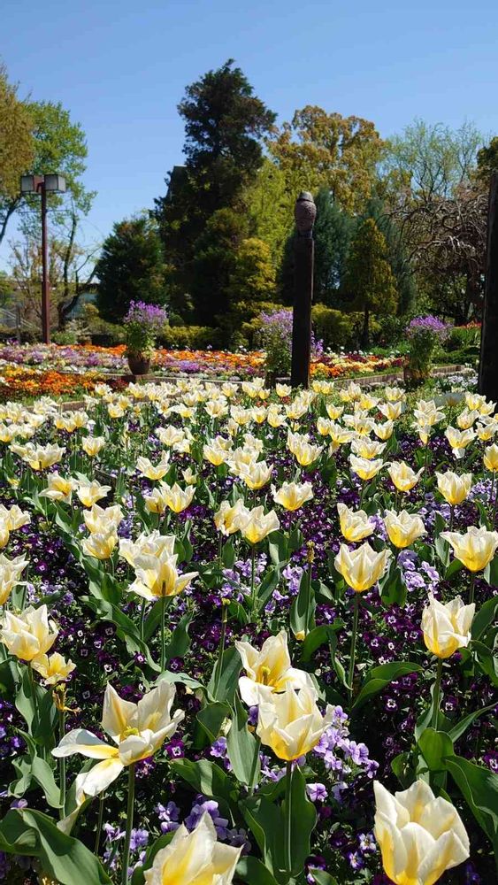 チューリップ🌷と紫の花は?ダイコンの花ではないよね😅