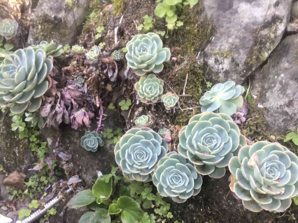 地植えは時々皆さんのを見せて頂いてますが…岩に張り付いて、子株も繁殖して…