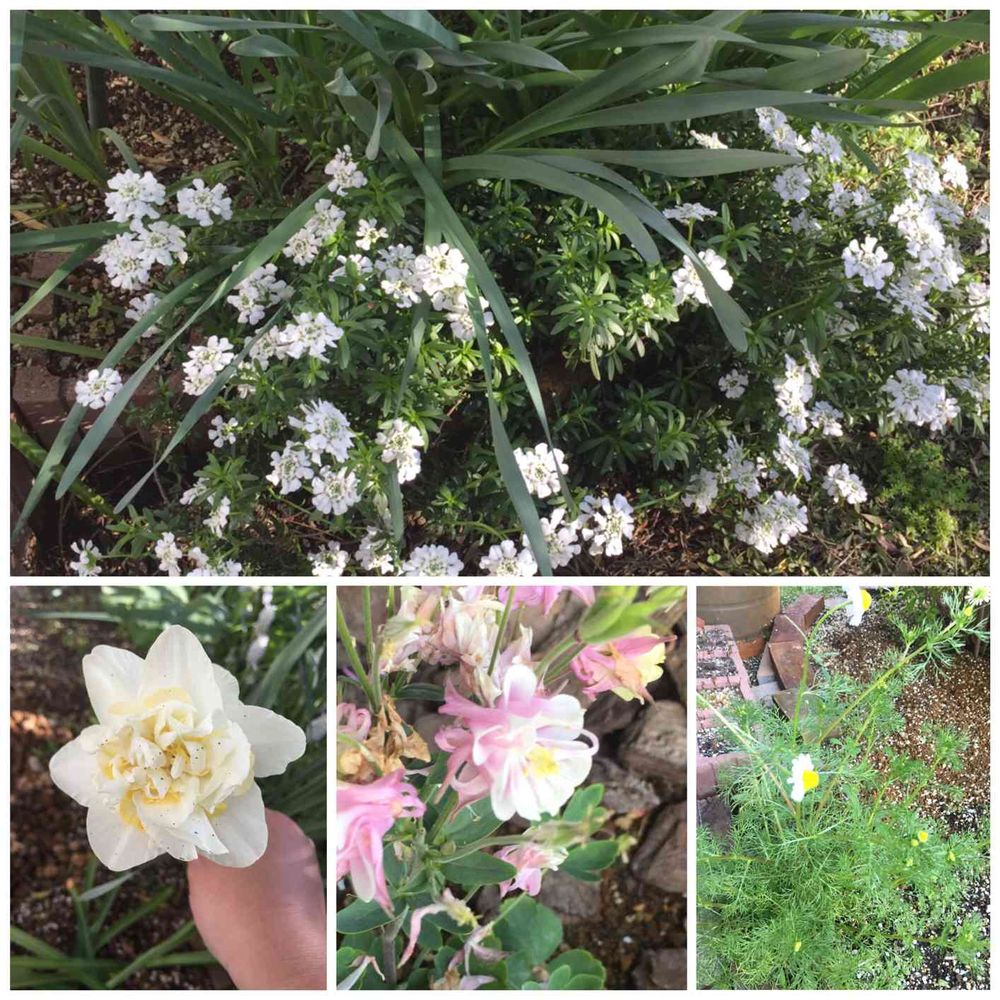小さな庭,白い水仙,オダマキの花の投稿画像