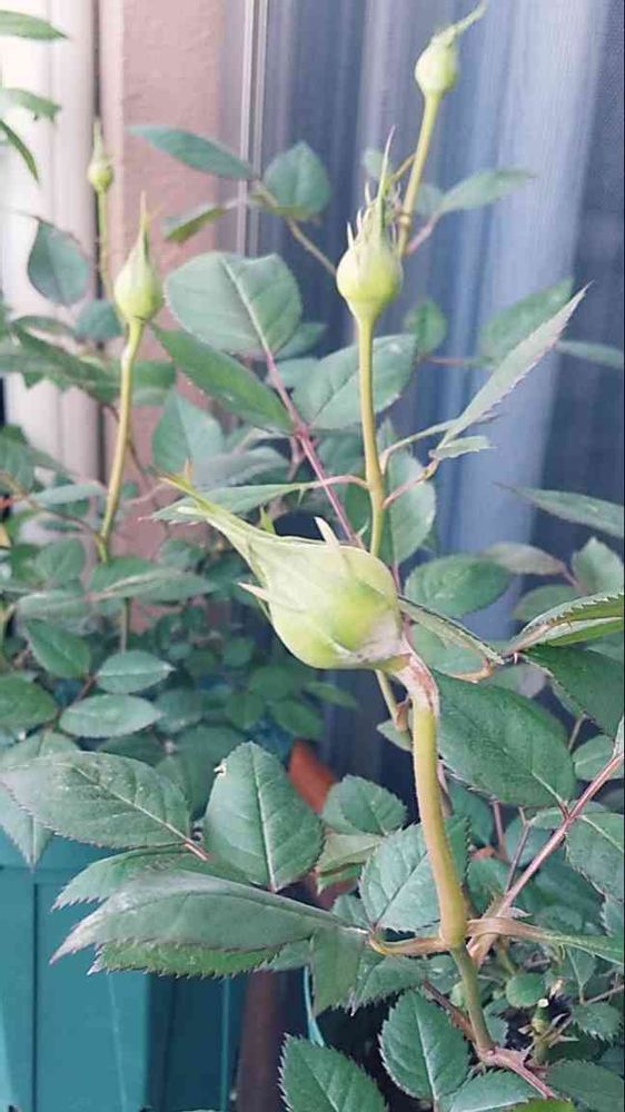 つぼみに少し白くついてるのはうどんこ❗️❓️優しくこすると取れるけど