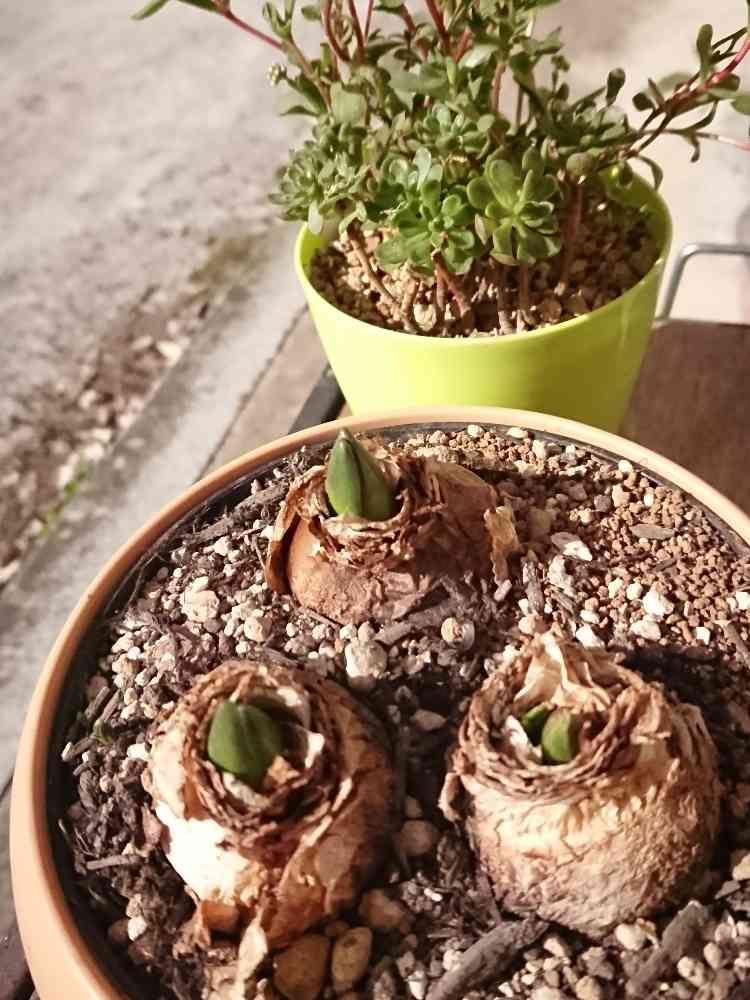 去年夏越して乾燥の土のまま冬越しして芽吹きを感じて水やりして今の状態🌱