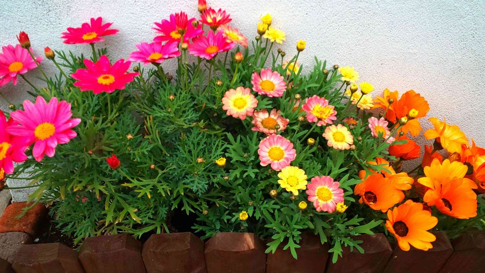 マーガレットは3月に地植えしたんですが、寒の戻りでなかなか咲いてくれなくて心配したんですが、4月になりようやく満開になりました☺️