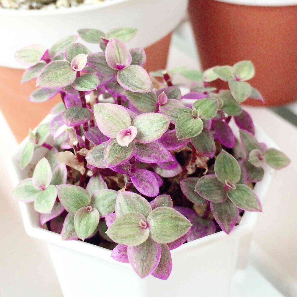 ウチの子、植え替えてからというもの、かわいいピンクから渋い紫に変わってしまった。土の成分でも色が変わるのかしら。