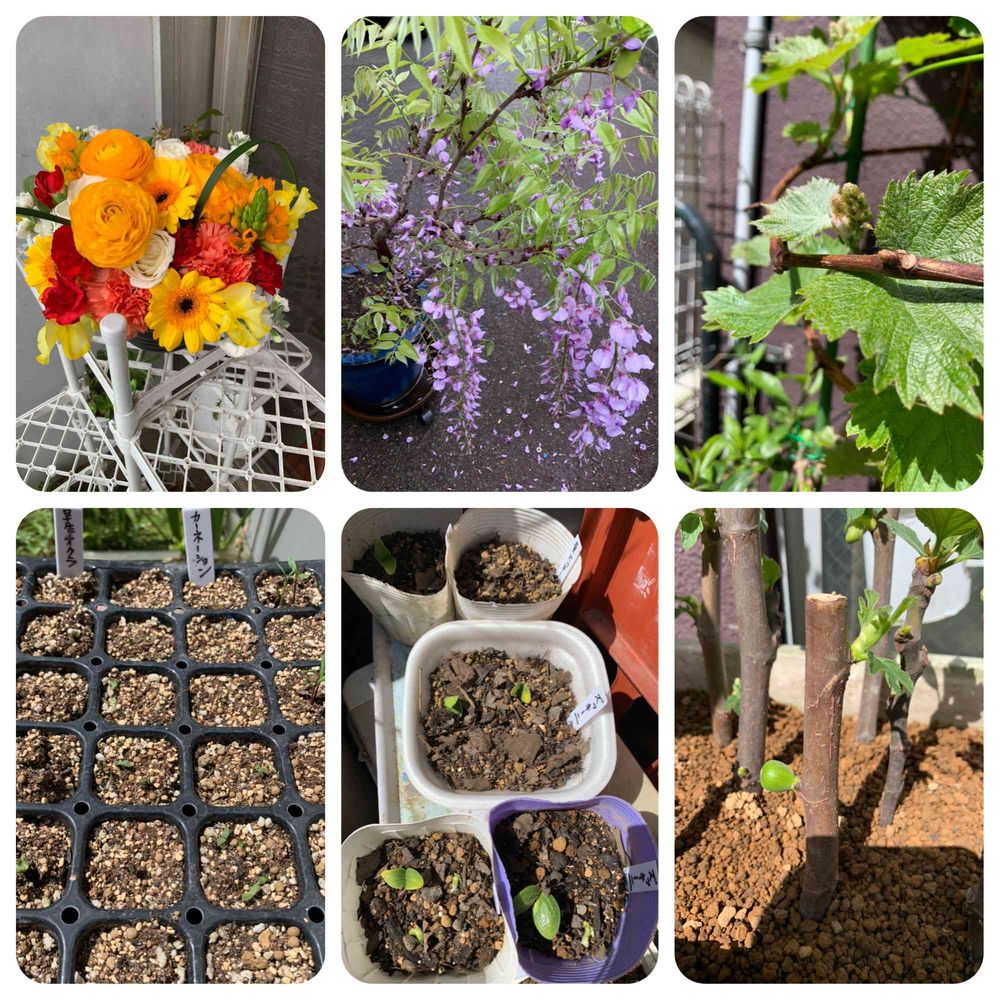 ズッキーニ オクラ カーネーション コスモス も芽が出てきています。楽しみ‼️