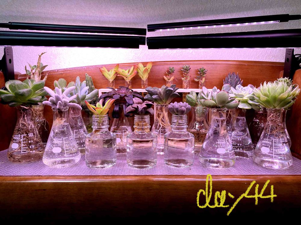 2021/2/21から自室で多肉植物の水耕栽培を始めました! フォロー大歓迎です! 自室は太陽光が一切差さないので、光は植物育成用LEDのみを使っています。 完全な初心者ですがよろしくお願いします!
