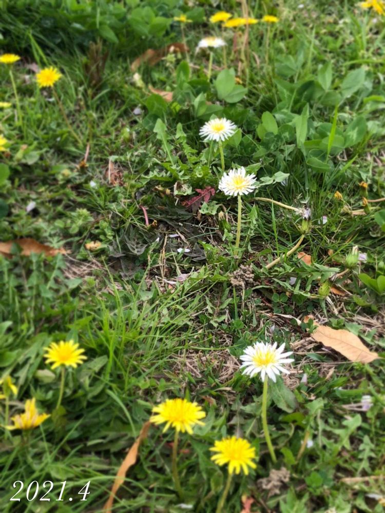 タンポポは日が暮れ始めると閉じるんですね。閉じると白いタンポポはどこなのか見つけることが出来ませんでした😅