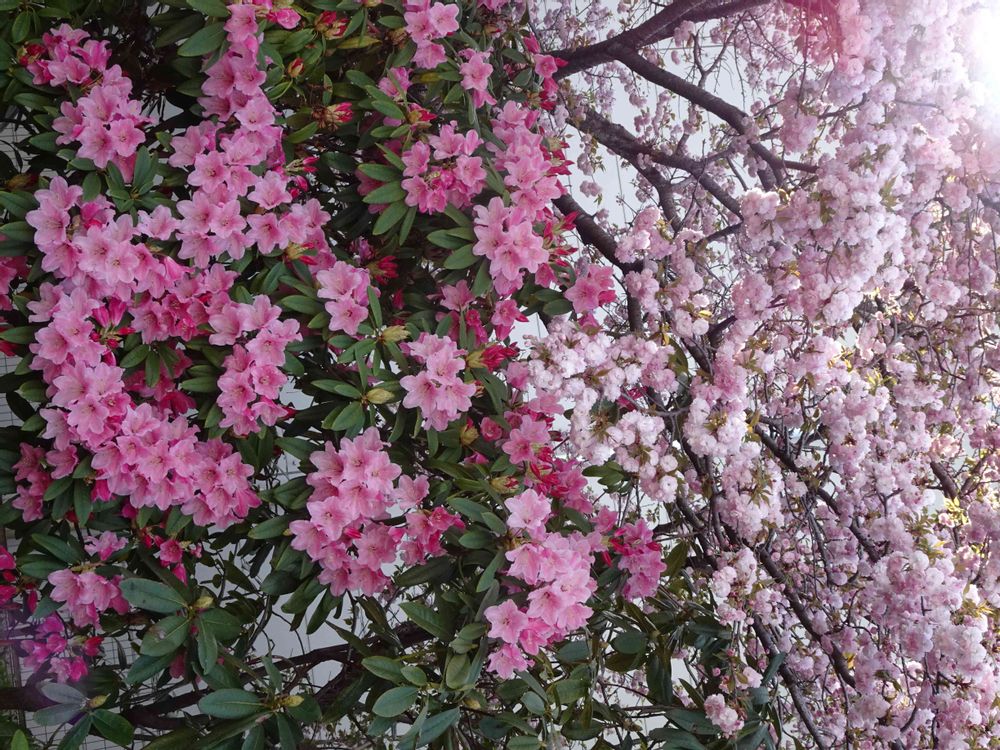八重桜と西洋シャクナゲ