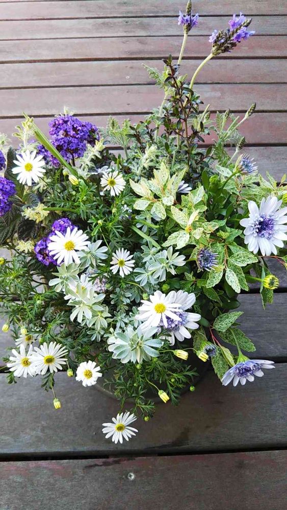ブルーと 紫で 寄せ植えをつくりました。爽やかそうで、お気に入りです。💜💙