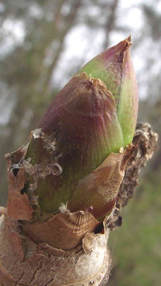 今は、直径3〜4㌢の2本の幹の先に芽が出ます。枝はありません・・・