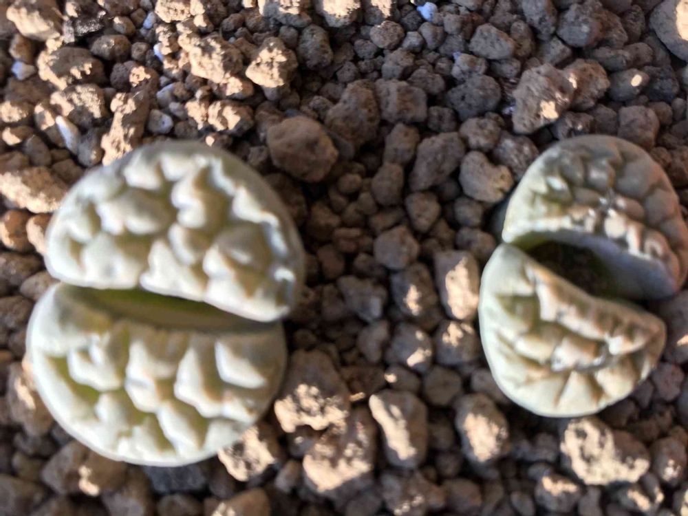リトープスさん、口が大きく開いてきました(ව̐👄ව̐)中に何かあるのですが、これってもう脱皮が始まっているのかな?
