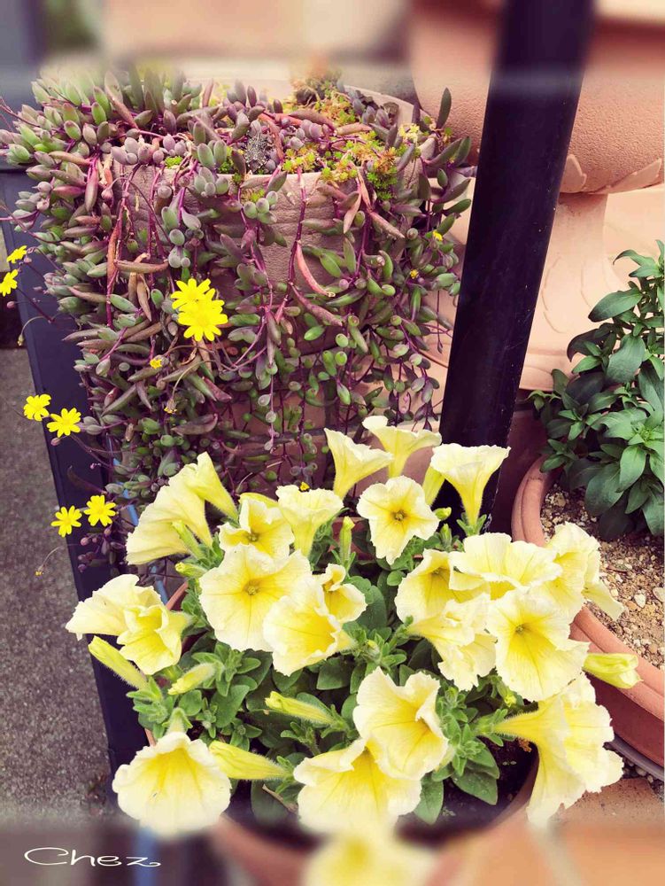 ペチュニアのレモンイエローが凄く綺麗ですね🍋✨