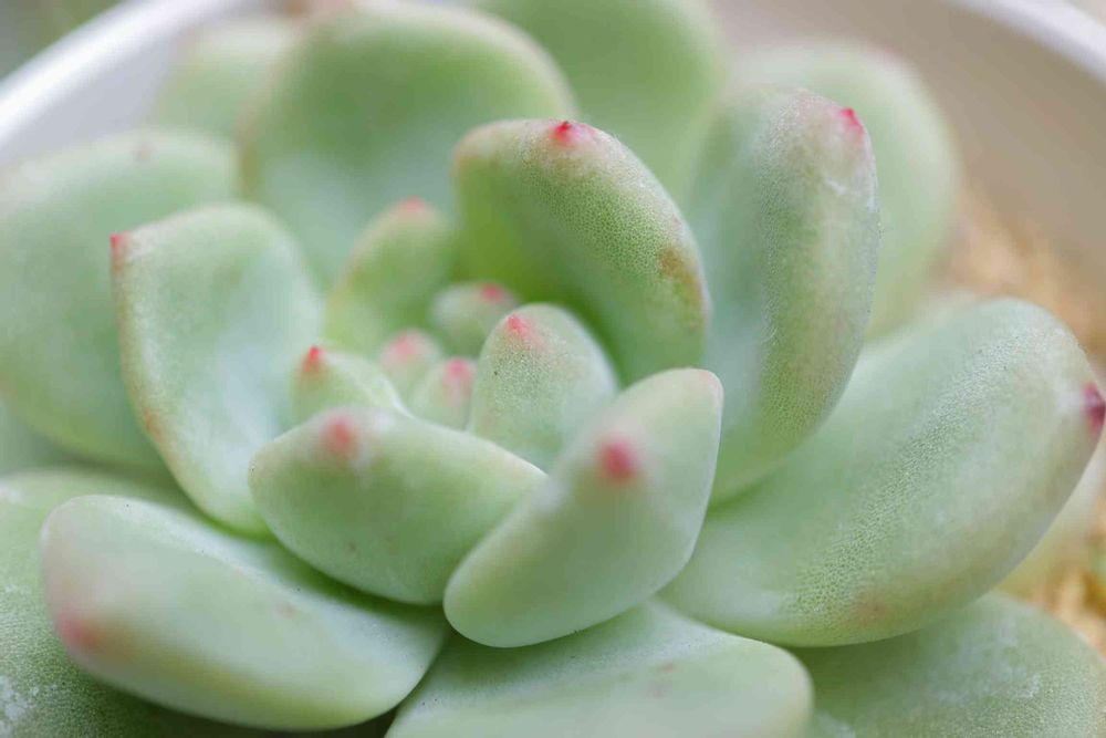 このアリエルさん、うちに来た時はまだ半分寝ていた😴ようで😆キュッとしまっていたんだけど、段々葉を開いて厚くプックリしてきました〜😄💕色も優しいグリーンです♪