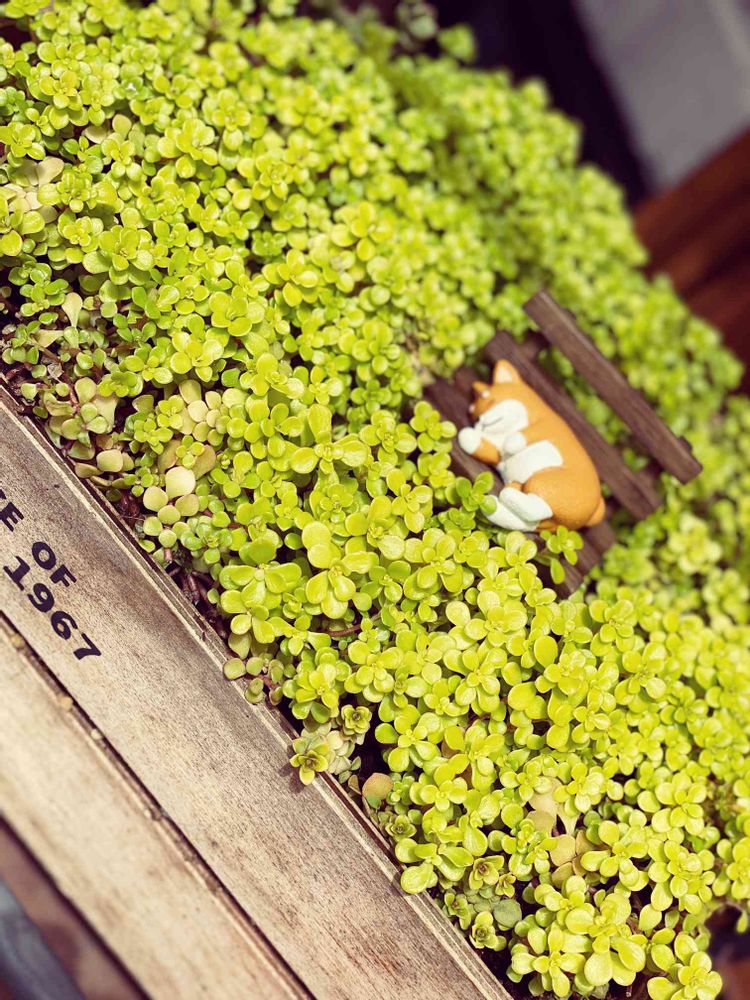 こんにちは🎶丸葉万年草を木箱に植えたら増える増える😆他の鉢にもカット・挿して楽しませてくれる万能セダムgoodです👏