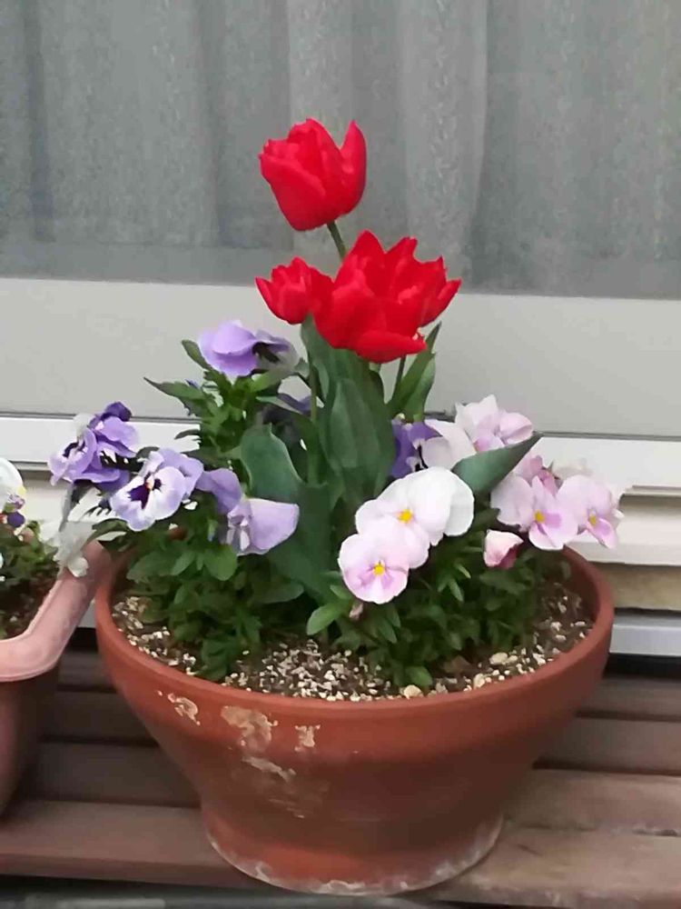 今年のチューリップとパンジーのコラボは、こんな仕上がりです🌷