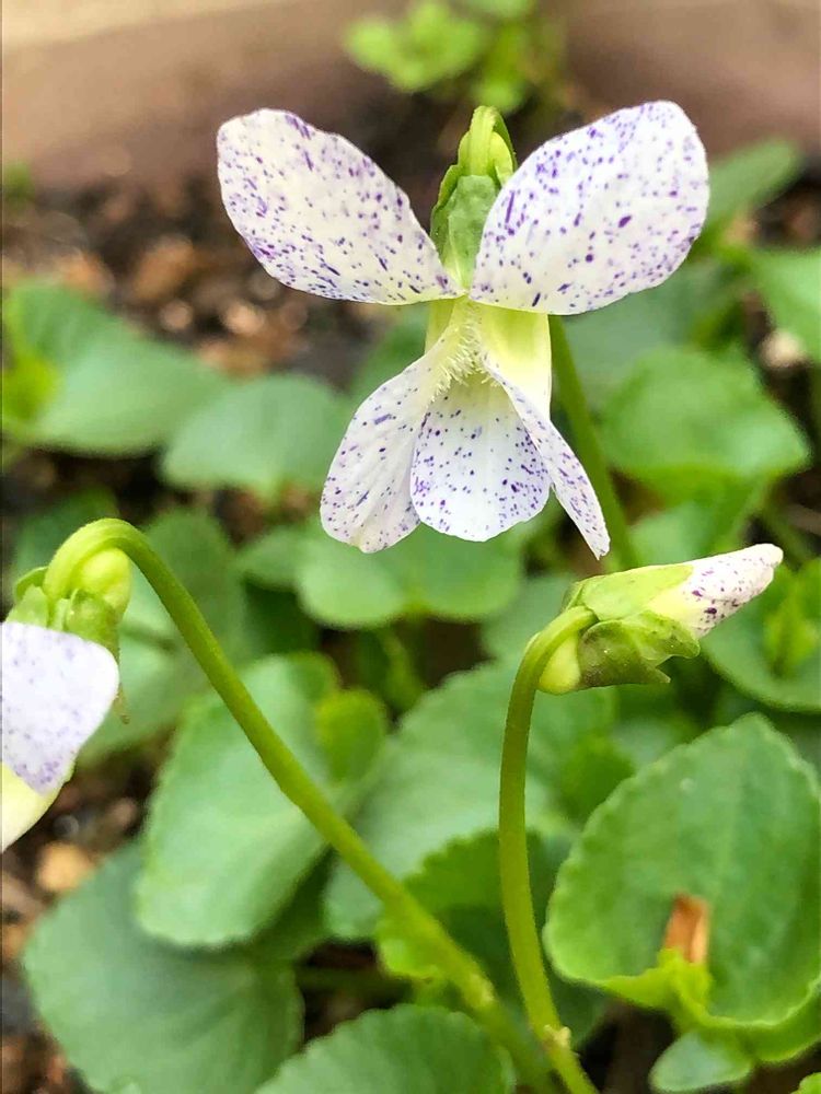 名前分からないのでネット見てたらフレックルスすみれ(そばかす)って、フッカケスミレとも言うんですね💓後、紫、濃い紫、白がいますスミレ
