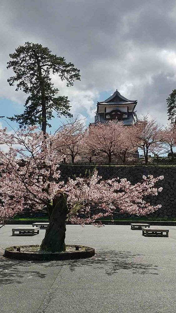 ほとんどの桜が散るなか金沢🏯を背景にした桜が見事に満開でした。
