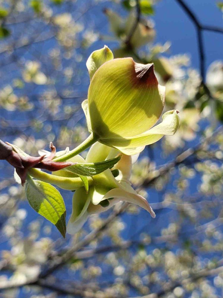 こちらも今、街路樹のハナミズキが次々に開いてる🎶まだ黄緑色に見えるハナミズキ。白くなる頃には、一回り大きくなってるんだろうなぁ✨