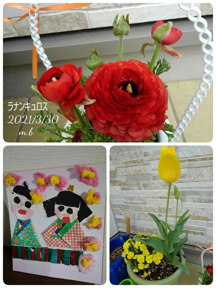 ラナンキュロスの鉢は幼稚園からの進級のお祝いだそうです😃