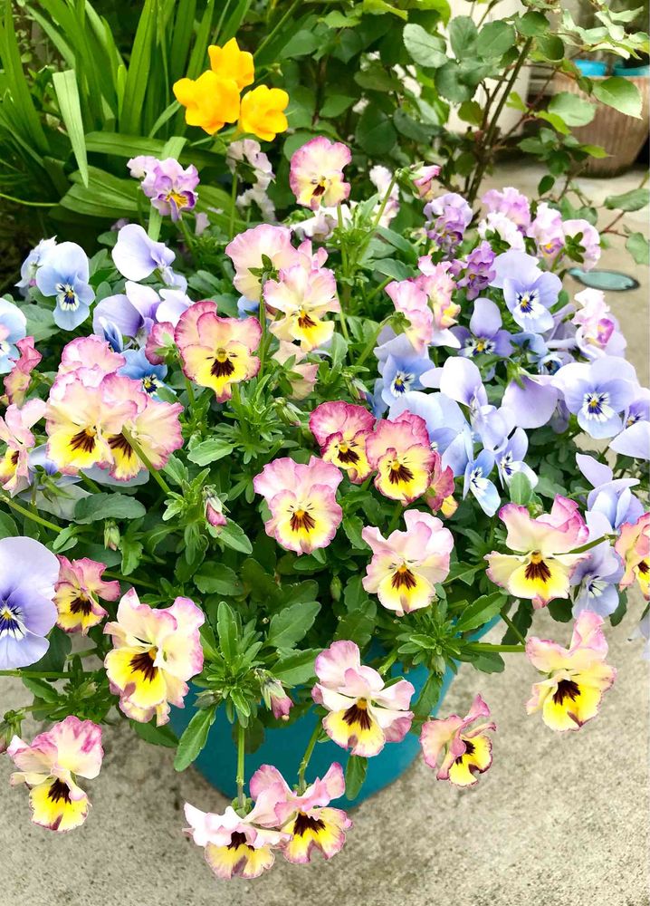 何となく考えずに寄せたのに、ピンクとブルーとイエローは楽しそうな鉢になりました♩♬♡