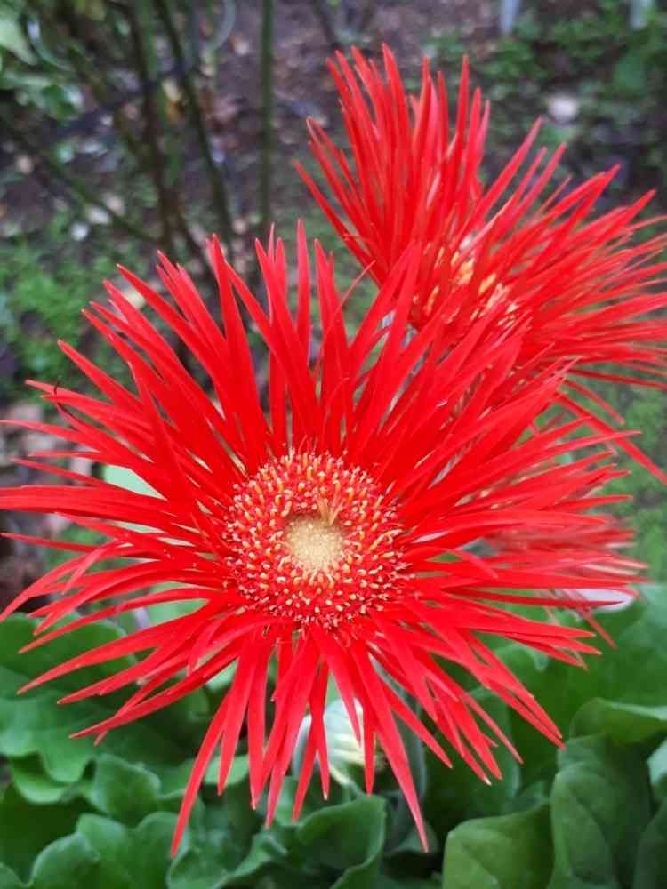 この形のガーベラは、初めて見ました。秋に赤い花、いいですね💕🤗