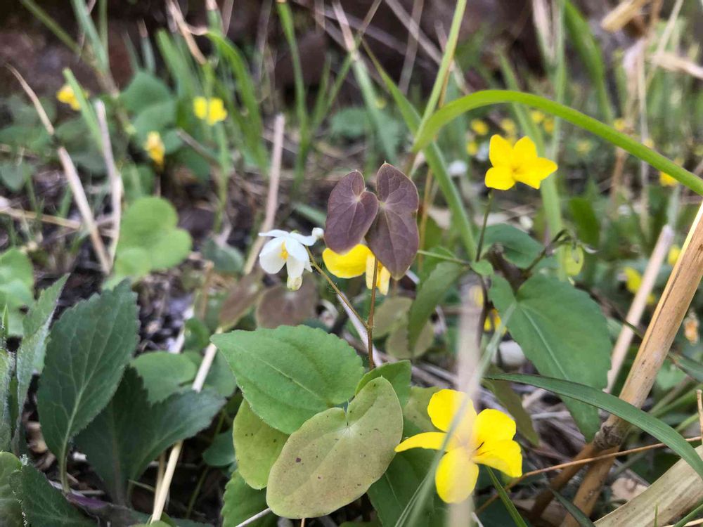 バイカイカリソウがキスミレと並んで咲いてます。