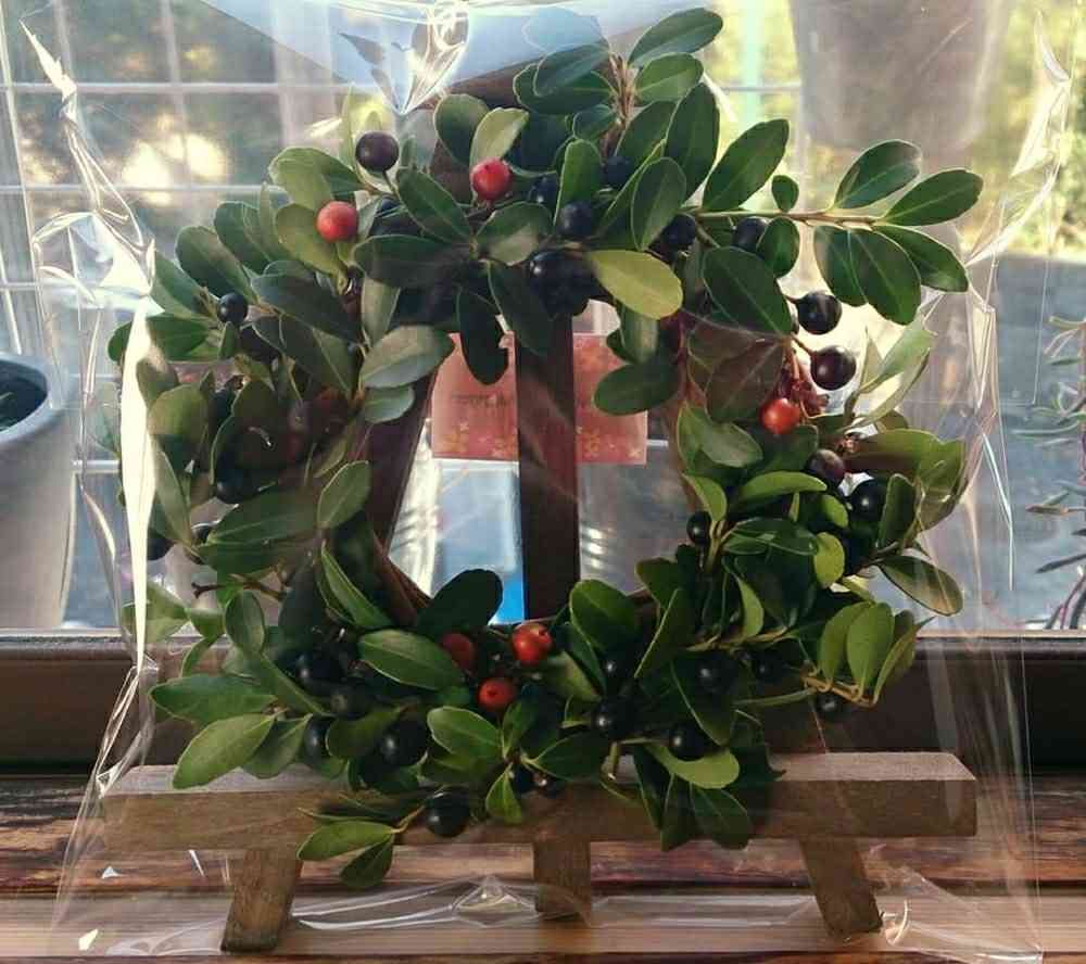 今日の写メは... 2年前我が家のつげの 🍀 葉+なんてんで リースを作り プレゼントしたものです😀💕