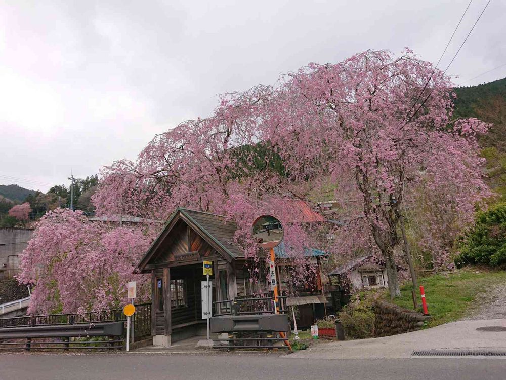 東京都檜原村人里(へんぼり)バス停のしだれ桜
