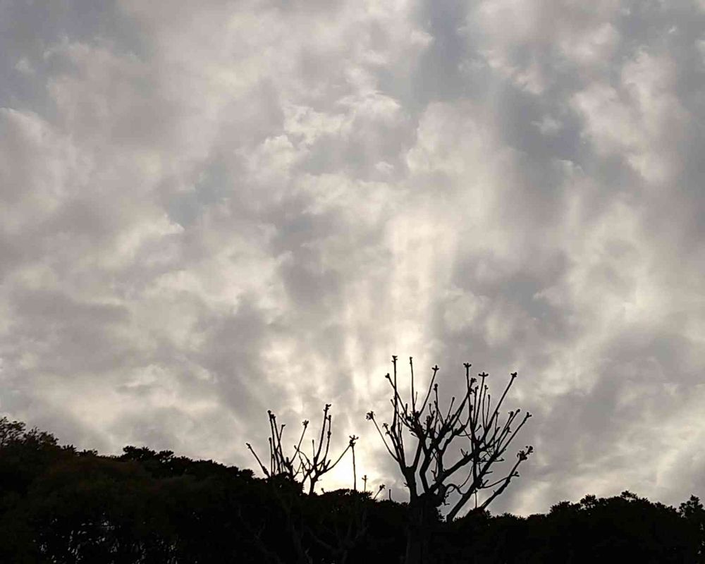 まるで墨絵のような雲。そして青桐(アオギリ)のお祈りが始まりました。😌✨
