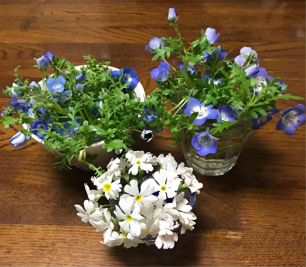 昨日の写真には写ってない伸び伸びのネモフィラと、折れたマラコイデスを救出してきました😀