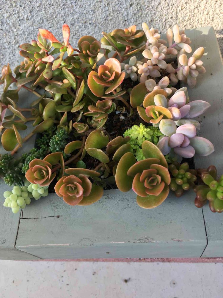 この適当な寄せ植え、紅葉っていうより日焼けかな?、っていう感じの色の変わり方なんですけど💧(特に大葉丸葉万年草☝️)、やっぱり日焼けなのか!?