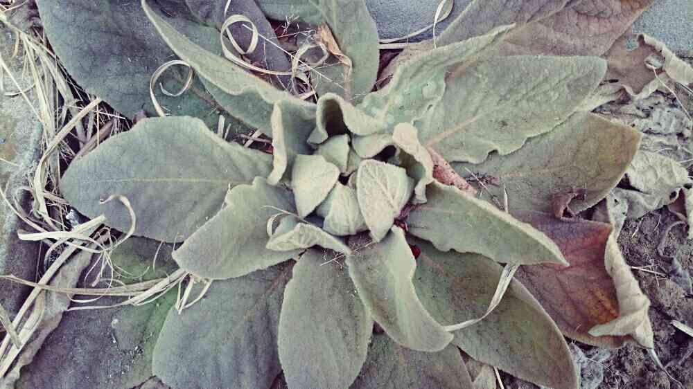 毛布のようなロゼット葉。真ん中が、何かを包み込むように丸くなってる。夏には背が高く伸びて、黄色い花がぽこぽこ咲いてました。気になる植物!クマさんに名前を教えていただきました♪バーバスカムというそうです(^-^)