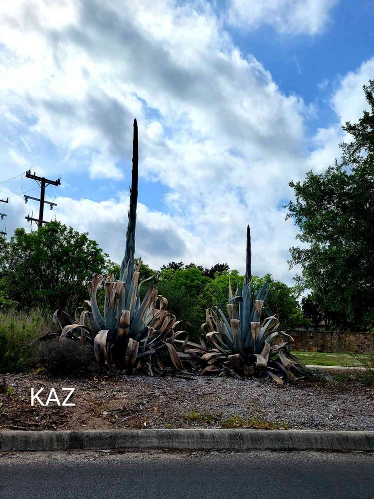 こちらで街路樹に多く使われているアオノリュウゼツラン私も移住当初は見る度に🌱Σ(*゚Д゚*)💕でした...今でも2m越えのには驚いてマス🎶あっちこっちで✂️されたのが多いですが根強いアガベ...圧倒される大きさに育つの愉しみです。