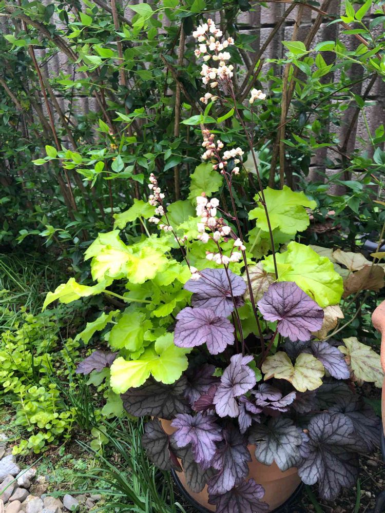 ヒューケラの寄せ植えのカラーバランスが素晴らしい(^.^)