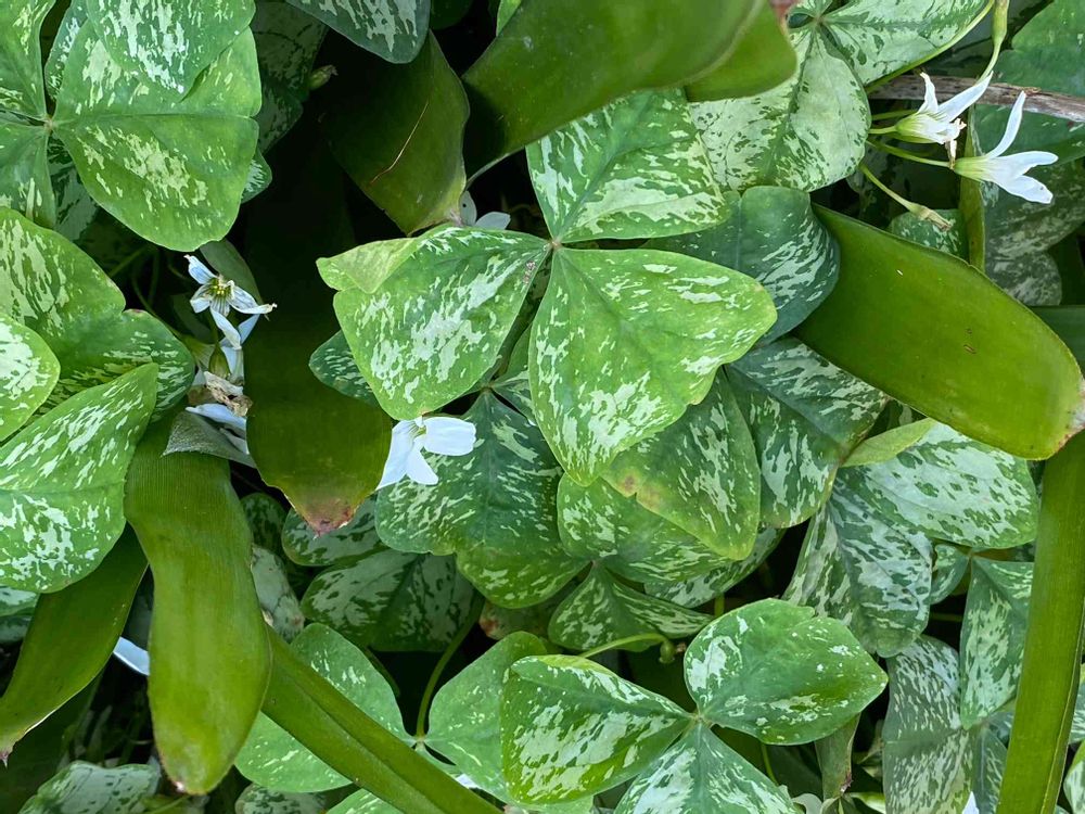 オープンガーデンをしているご近所さんのお庭♡斑入りの白のオキザリス〜❣️❣️❣️