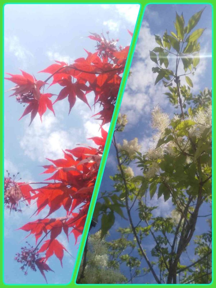 この間まで、すっかり両方とも葉が落ちて、枯れ木のようだったのに、もうフサフサ🌿