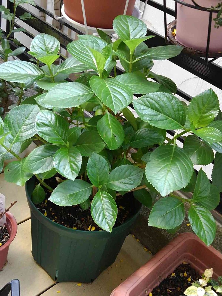 先日鉢が小さくなり、大きな鉢に植え替えた紫陽花(金平糖)💜🌼