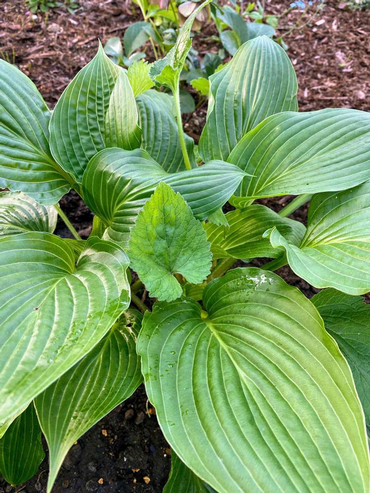 ギボウシをいただきました♡真ん中に違う葉っぱもついてる✨わきっちょにも何か細い葉が一緒についてきてました✨お楽しみ付きでした(´∀`)