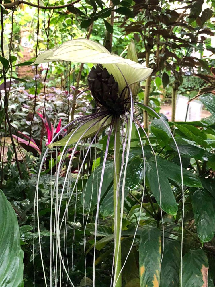 紫の長いヒゲを伸ばしている様子がコウモリに似ている為コウモリの花とも言われているそう とても複雑なお花です。❓❓