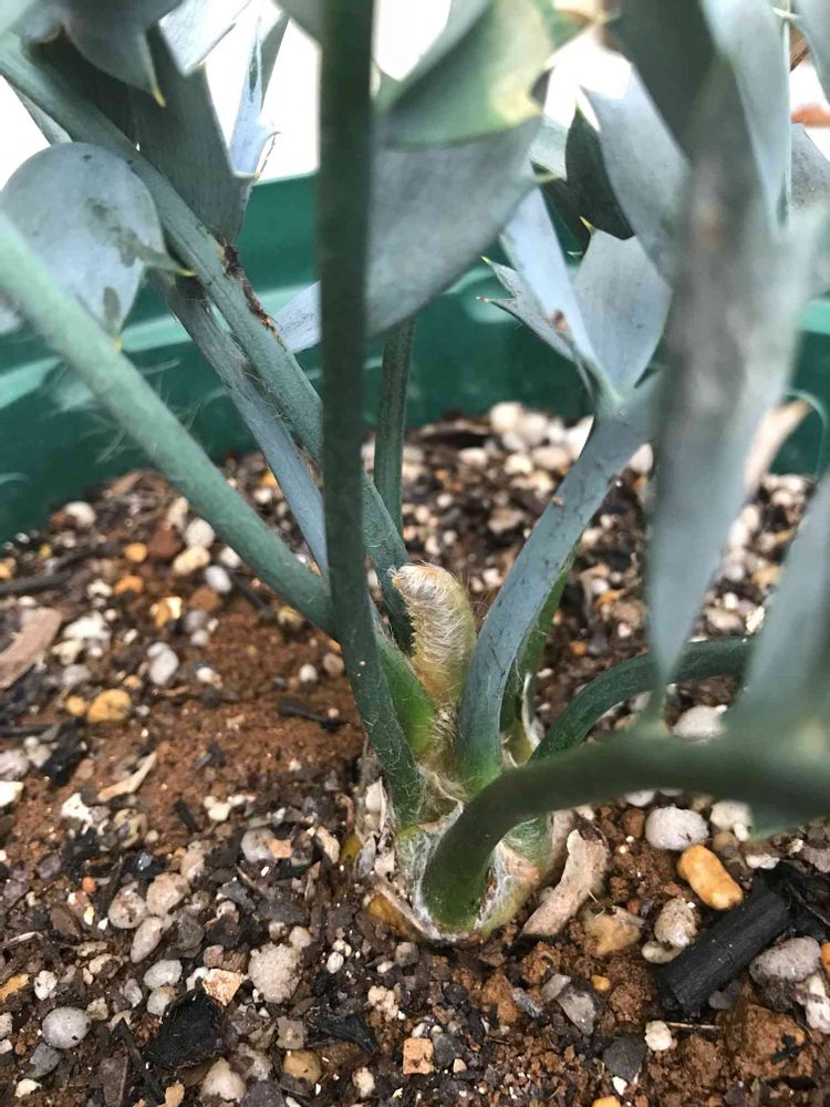 このくらいの株の大きさだと、2〜3本の葉を展開しているのが普通だと思うのですが。
