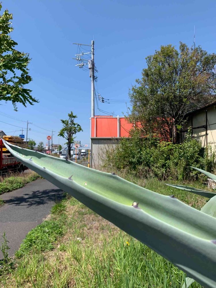 暖かくなりお肌も濃い緑。健康体✨凶器の様な棘もピンピン‼️野良アガベ強し。