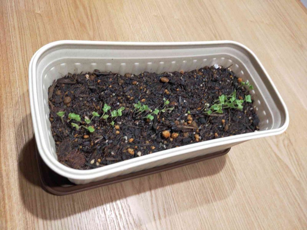 水菜が発芽しました。外だと虫に食われそうなので、室内プランターにも種をまきました。早く食べたいです。