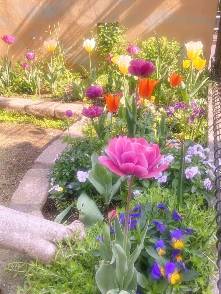手前に大きく咲いているのは八重のチューリップ🌷さんですか?
