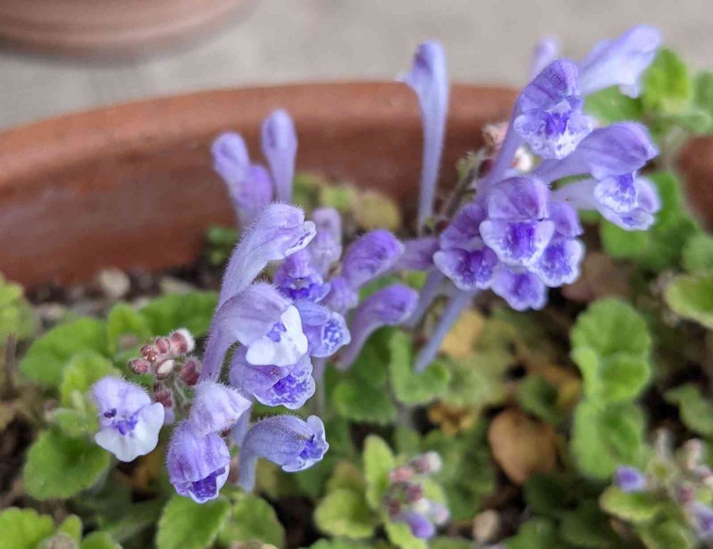 大好きなベランダのタツナミソウは素焼きの鉢に🌿💜🌿