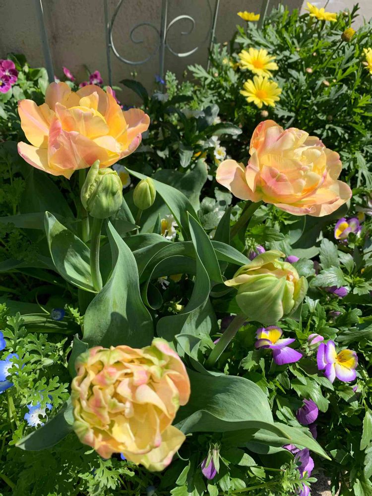 八重咲きチューリップがだいぶ咲いてきて我が家小さな花壇が華やかになっています🌷