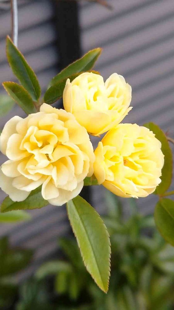 木香薔薇の黄色の花が三輪咲きました。🌹