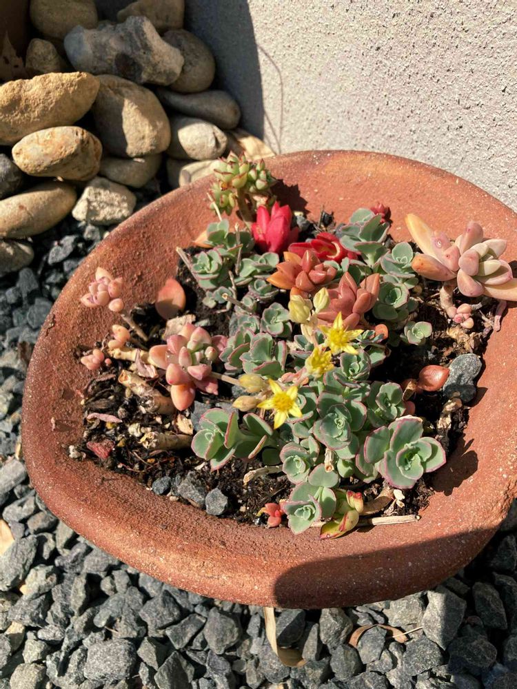 子どもが採ってしまった多肉を置いていたら、寄せ植え的な良い感じになってきた♡