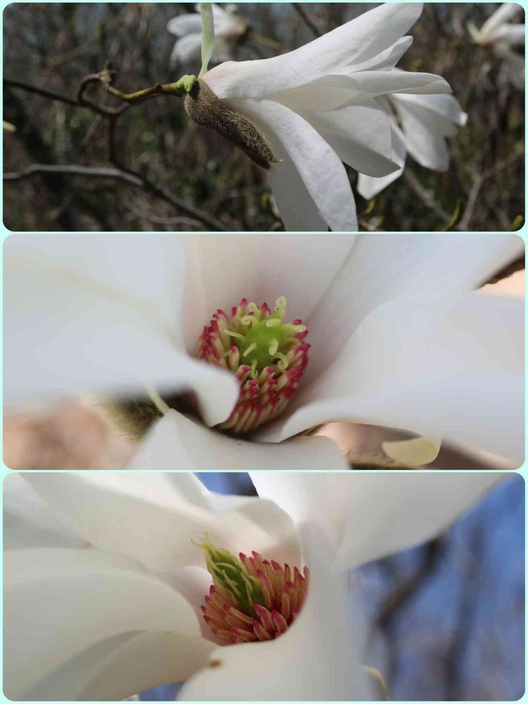 しつっこく、タムシバ‼️。だって、いい頃かげんに咲いていたので、ついつい撮ってしまった。⬆️↕️開きかけの花に、レンズを突っ込んでパシャ。雌蕊クルリン、イイネ〜。⬇️の花は雄蕊も広がって、雌蕊も柱頭に張り付いています。雌性先熟‼️。