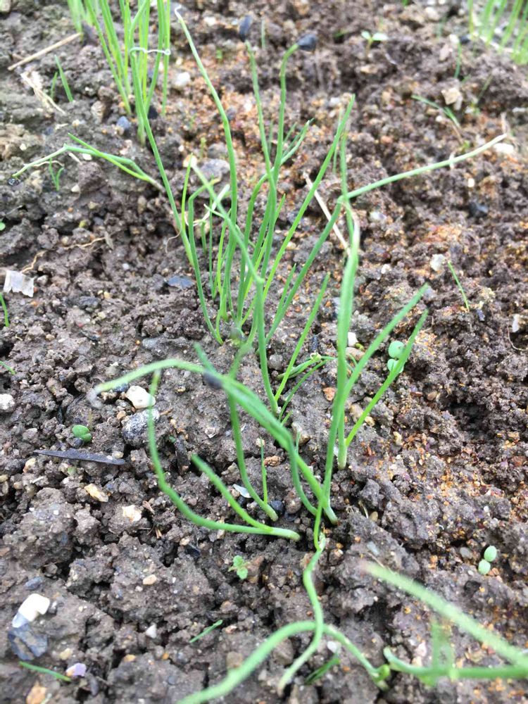 ネギ坊主からタネを取った下仁田ネギ、生えそろう。