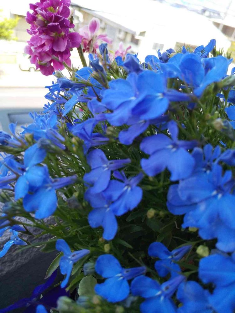 今朝の北側ベランダに…目の覚めるような…ロベリアと…一輪のストックピンクの花で……💠💙🌸💠💙🌸💓🙆🏻♀️🤗✨