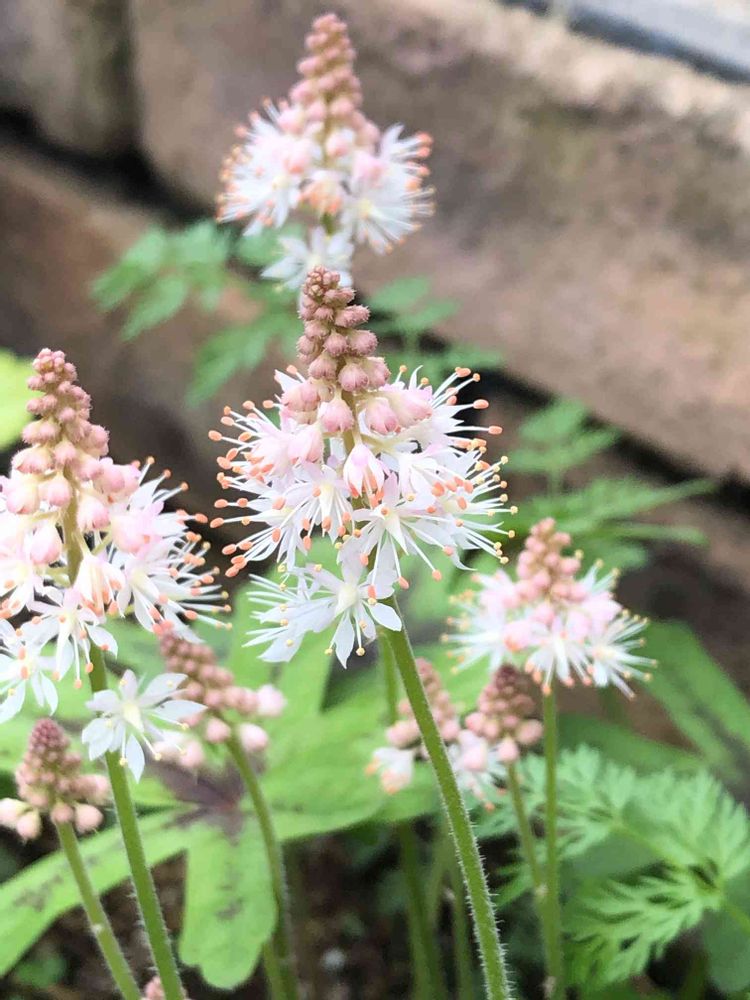 ヒューケラ以外にも日陰で育つ植物を植えたくて、昨年秋に植え込んだものです。花を見るのは☝️初めてです💕
